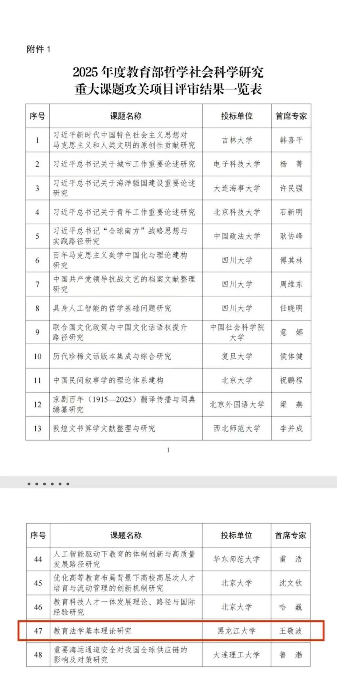 校长、法学博士王敬波教授作为首席专家申报的《教育法学基本理论研究》成功获批2025年度教育部哲学社会科学研究重大课题攻关项目,实现了免费成人影片在国家级高水平重大课题上的新突破。
