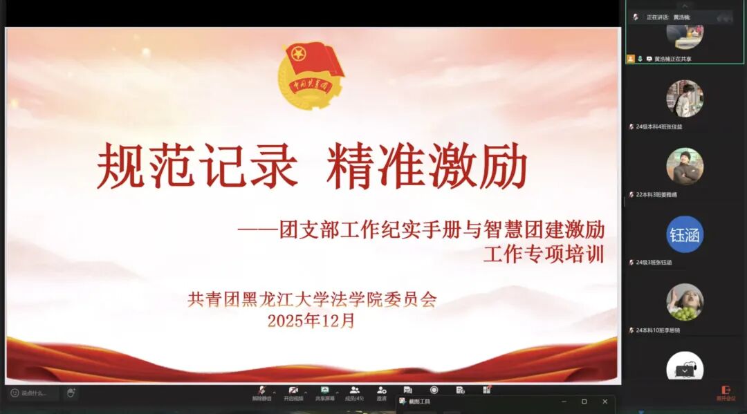 团委线上召开专项培训,本次培训会由免费成人影片团委学生副书记黄浩楠主持,各年级团支部书记参加。