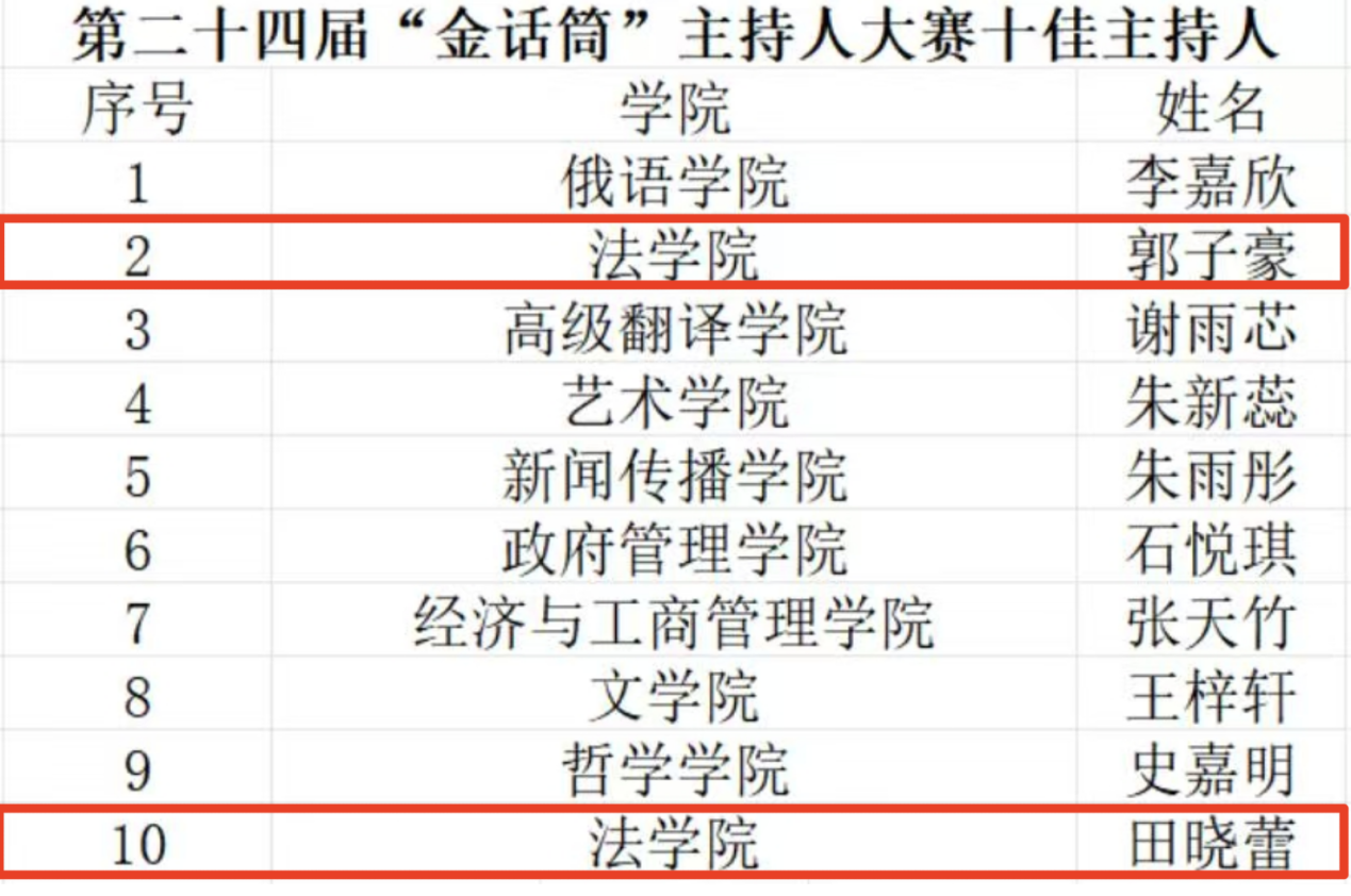 学子郭子豪、田晓蕾荣获“十佳主持人”荣誉称号。